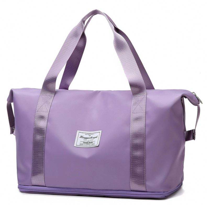 กระเป๋ากีฬาไนล่อนพับเก็บได้สำหรับไปยิมกระเป๋ากระเป๋าเดินทางกันน้ำสีชมพู