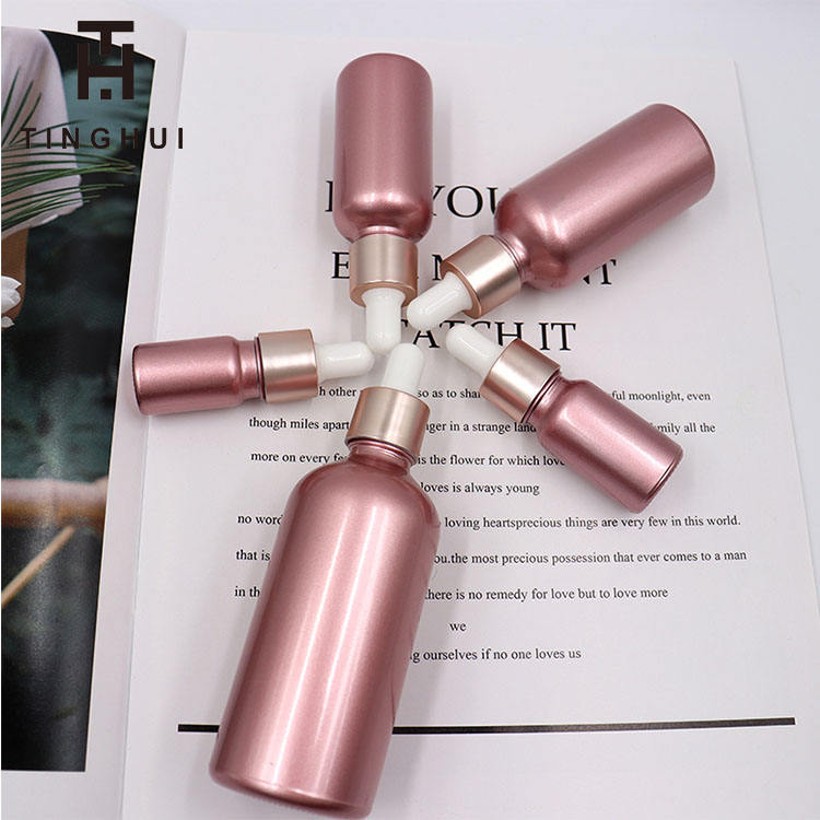 ขวดแก้วสีชมพูขุ่นแบบหยดพร้อมหัวหยด ขนาด 5 มล. 10 มล. 15 มล. 30 มล. 50 มล. 100 มล. สำหรับบรรจุน้ำมันหอมระเหย (ขายส่ง)