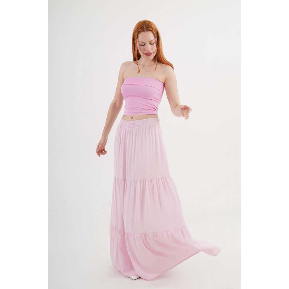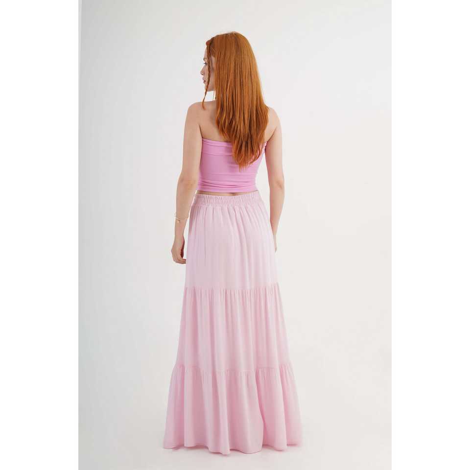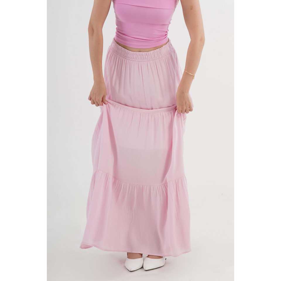 กระโปรงทรงเอวสูงสไตล์วินเทจ ผ้าไหมผสมฝ้ายสีชมพู แต่งระบาย ลายพิมพ์ ตกแต่งสไตล์ลำลอง สำหรับฤดูใบไม้ผลิ ขายส่ง