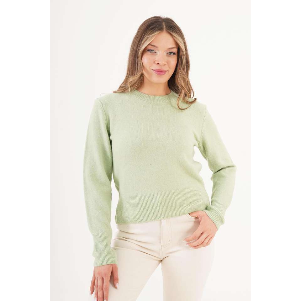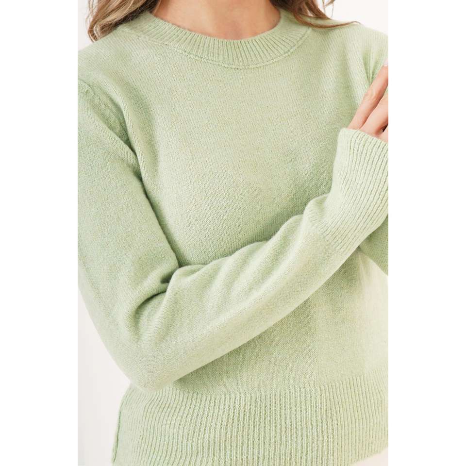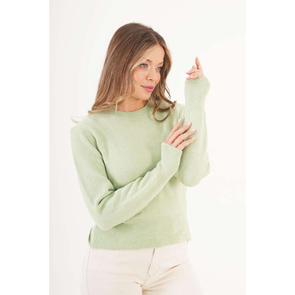 เสื้อสเวตเตอร์ผู้หญิง คอกลม สีเขียวพิสตาชิโอ แบบเรียบง่าย ขายส่ง