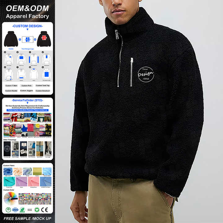 เสื้อฮู้ดซิปหน้าผู้ชายแบบเรียบ ทรงปกติ ปักลายตามสั่ง ผ้าฟลีซขนแกะ เสื้อสเวตเชิ้ตแบบซิปครึ่งตัว ขายส่ง