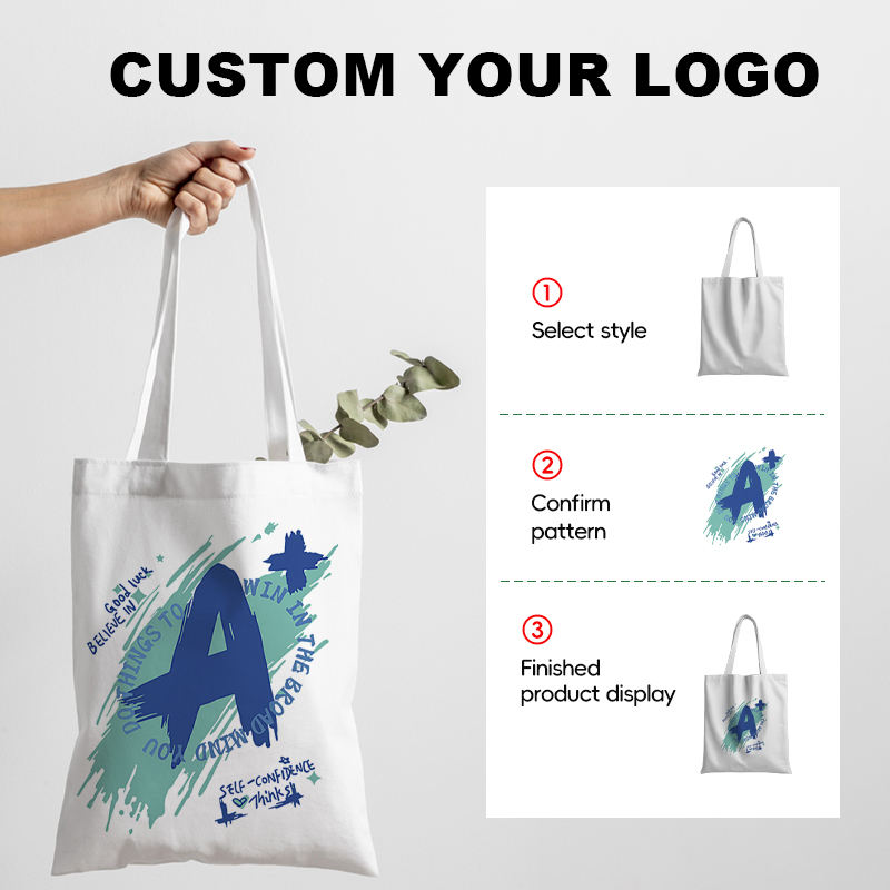 กระเป๋าผ้าแคนวาสแบบเรียบสำหรับขายส่ง พิมพ์ลายโลโก้ตามสั่ง กระเป๋าโท้ทแบบกำหนดเองได้