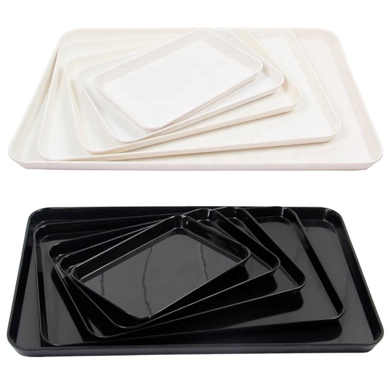 ถาดเมลามีนทรงสี่เหลี่ยมผืนผ้าสีขาวล้วนสีดำ