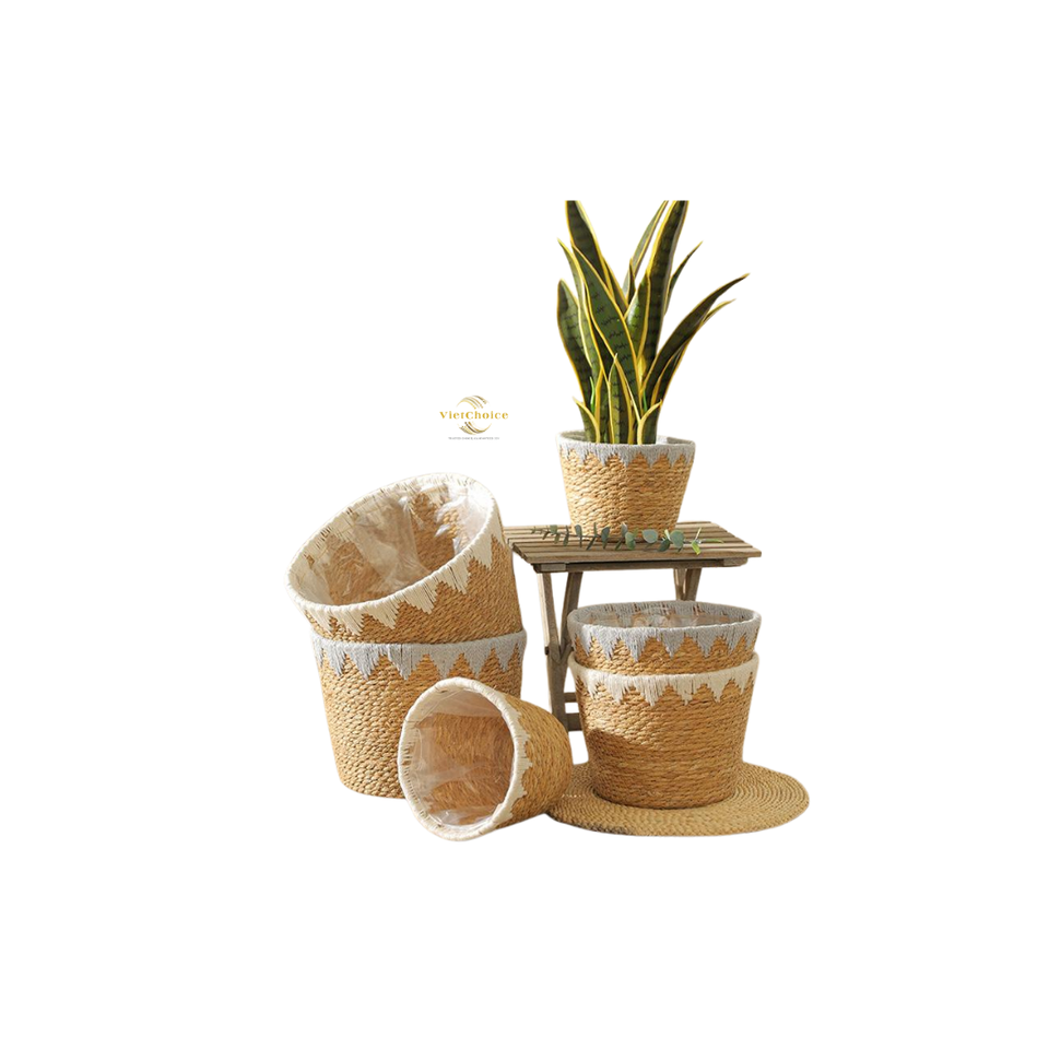 กระถางต้นไม้ขายส่ง ทำจากผักตบชวา ทอมืออย่างยั่งยืน เป็นมิตรกับสิ่งแวดล้อม สำหรับบ้านและสวน