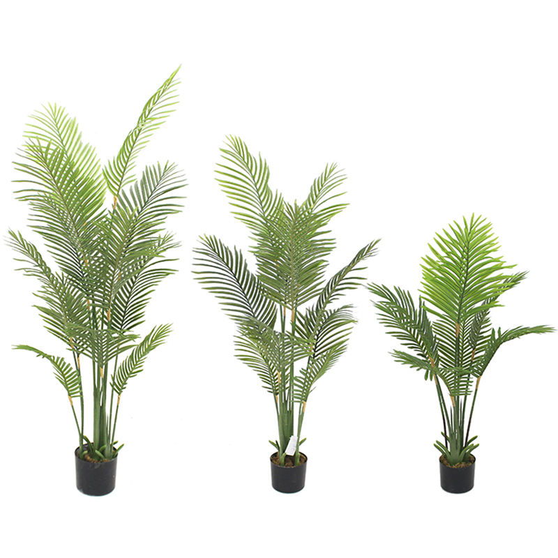 ต้นปาล์มพลาสติกปลอมขายส่ง พร้อมใบไม้ทนรังสียูวี และดีไซน์กันน้ำ สำหรับตกแต่งบ้านและสวน