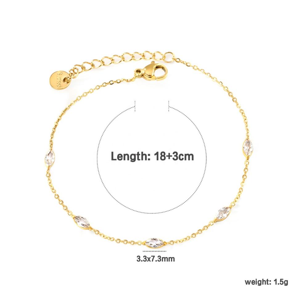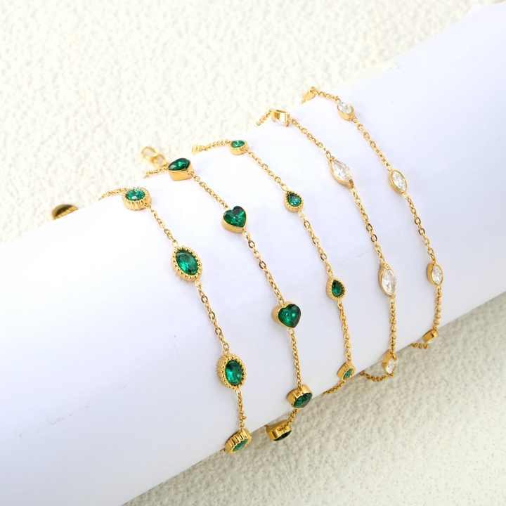 กำไลข้อมือชุบทอง 18K สำหรับผู้หญิง สแตนเลสฝังหัวใจสี่เหลี่ยมประดับเพชรซิคอนสีขาวและสีเขียว แบบขายส่ง