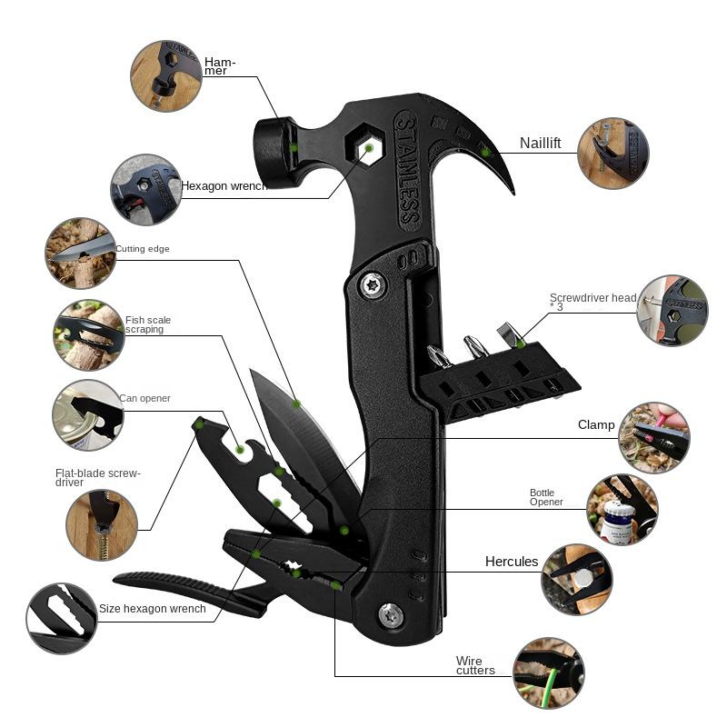 คีมอเนกประสงค์พร้อมค้อนตีตะปู สแตนเลส พร้อมปลอกไนลอน สำหรับกิจกรรมเอาตัวรอดกลางแจ้ง ตั้งแคมป์ ล่าสัตว์ เดินป่า