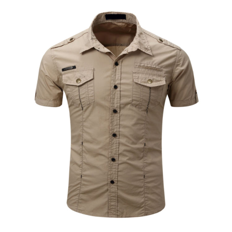 เสื้อเชิ้ตผู้ชายไซส์ใหญ่แฟชั่นฤดูร้อนแขนสั้นสำหรับกิจกรรมกลางแจ้ง ผ้าฝ้าย 100% พิมพ์ลายสกรีน สีพื้น ระบายอากาศได้ดี สไตล์ลำลอง ขายส่ง