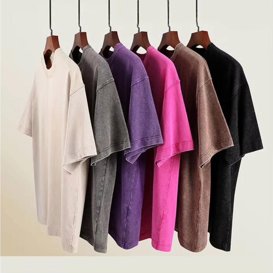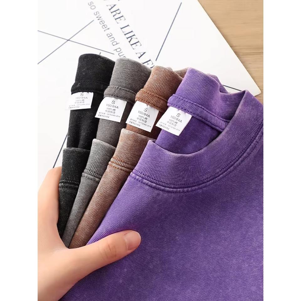 เสื้อยืดฮิปฮอปผ้าฝ้ายสไตล์สตรีทแวร์สำหรับผู้ชายเสื้อยืดโอเวอร์ไซส์ผ้าโอเวอร์ไซส์ผ้า100% ฟอกสีกรดแบบวินเทจ