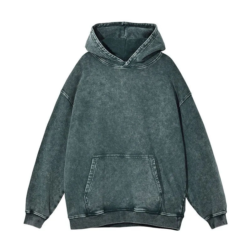 เสื้อฮู้ดดี้ผู้ชายไซส์ใหญ่สำหรับขายส่ง รุ่นฤดูใบไม้ร่วง ล้างสีแบบแอซิด ระบายอากาศได้ดี ทรงไหล่ตก รับสกรีนโลโก้ ผ้าฟลีซคอตตอน 100%