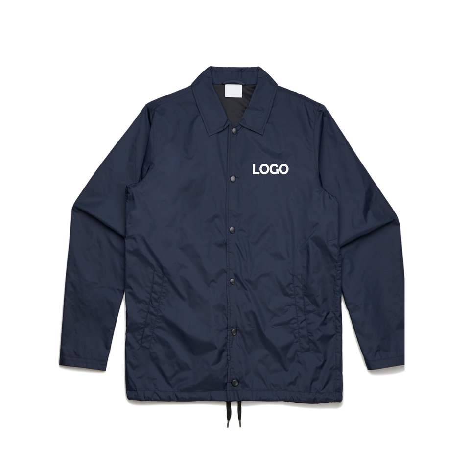 เสื้อแจ็กเก็ตไนล่อนเสื้อโค้ชระบายอากาศมีโลโก้ย้อมสีเรียบขนาดใหญ่ออกแบบได้ตามต้องการ