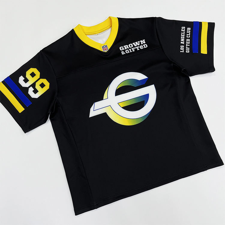 เสื้อฟุตบอลอเมริกันไซส์ใหญ่ แห้งเร็ว ระบายอากาศดี ป้องกันรังสียูวี ผลิตจากโพลีเอสเตอร์/คอตตอน พิมพ์ลายดิจิทัล รับสกรีนโลโก้ สำหรับทุกเพศ