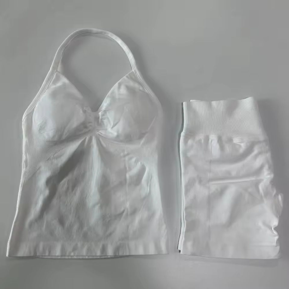 ชุดโยคะแห้งเร็วแบบขายส่ง ไซส์ใหญ่ สีพื้น สำหรับผู้หญิง ชุดออกกำลังกาย เลกกิ้งและเสื้อชั้นใน ชุด 2 ชิ้น