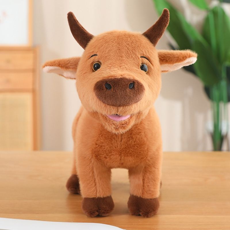 ตุ๊กตาวัวจำลองขนนุ่ม ของเล่นเด็ก ของขวัญวันเกิด ของตกแต่งบ้าน ตุ๊กตาวัวสีน้ำตาลเหมือนจริง