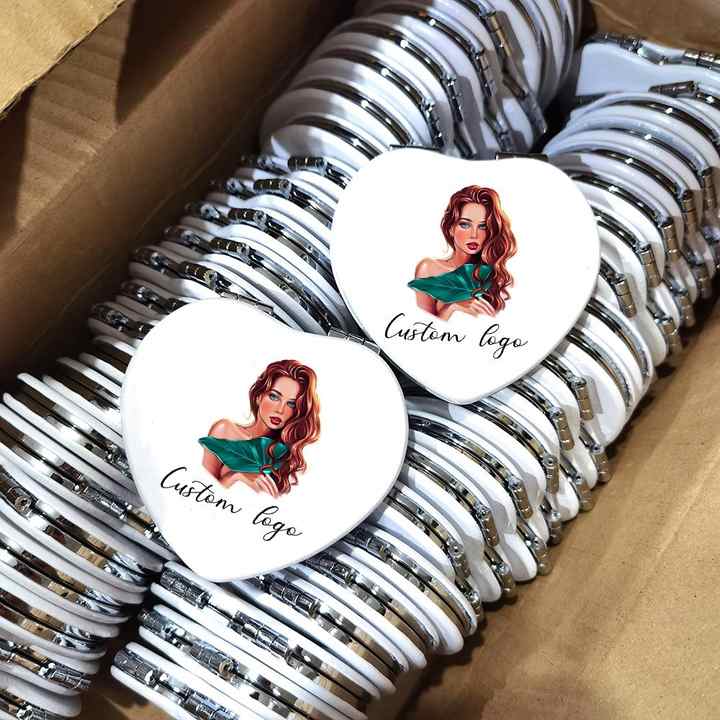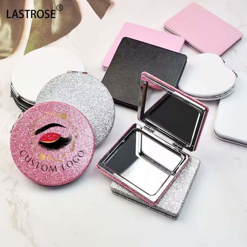 กระจกพกพาแบบพับได้สองด้าน รูปหัวใจ วัสดุ PU ขนาดเล็ก สำหรับแต่งหน้า เหมาะสำหรับสาวๆ ขายส่ง