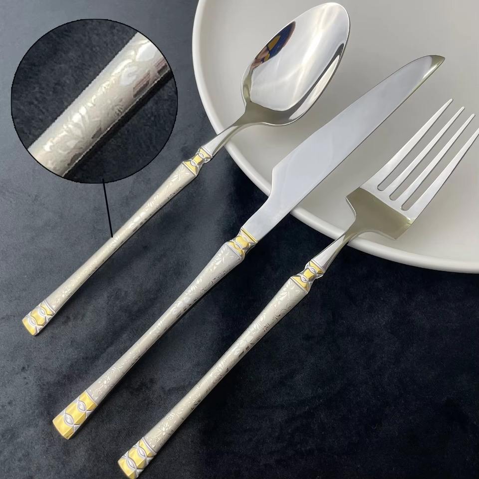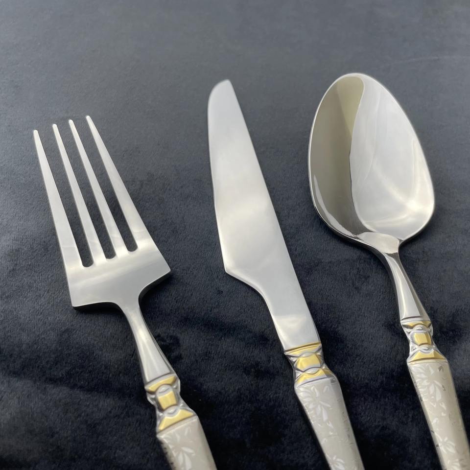 ชุดเครื่องใช้บนโต๊ะอาหารสแตนเลสขัดเงาเป็นมิตรต่อสิ่งแวดล้อมสำหรับงานแต่งงานโรงแรมงานอีเวนต์อาหาร