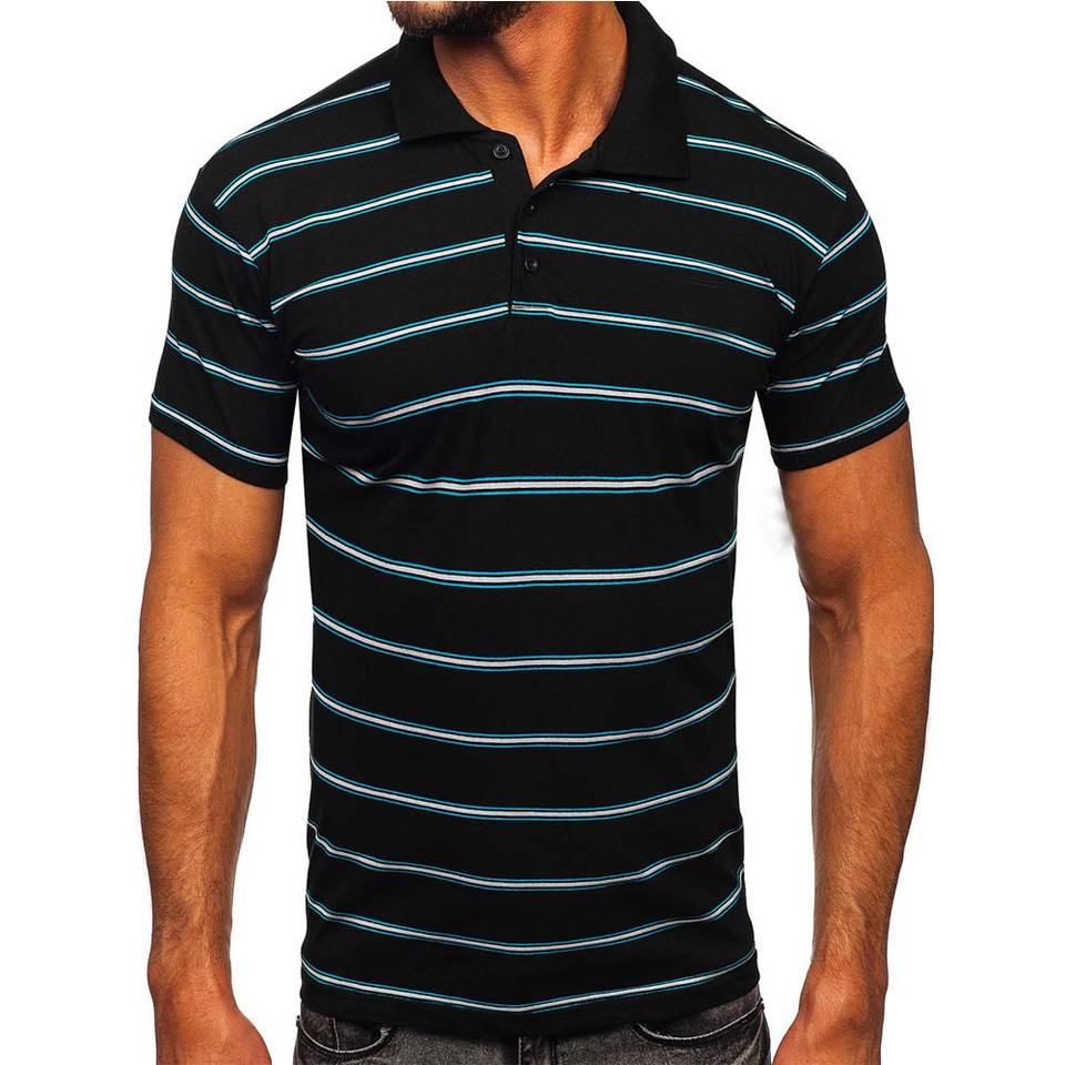 เสื้อยืดโปโลผู้ชายเสื้อกอล์ฟลายทางแฟชั่นแนวสตรีทเสื้อฤดูร้อน
