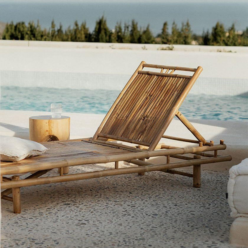 เก้าอี้เลานจ์สำหรับสระว่ายน้ำเก้าอี้อาบแดดทำจากไม้ไผ่ทนทานใช้ในสวนพักผ่อนกลางแจ้งลานสวนพักผ่อนเตียงอาบแดด