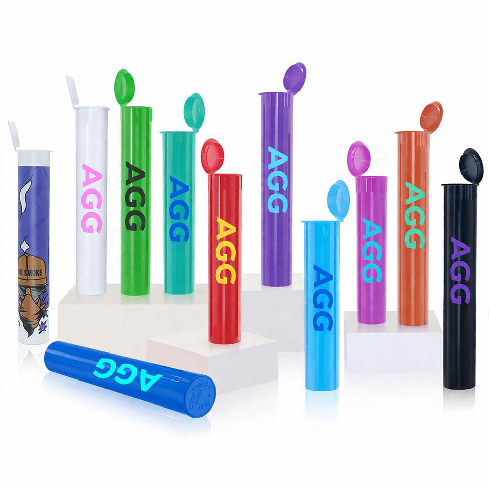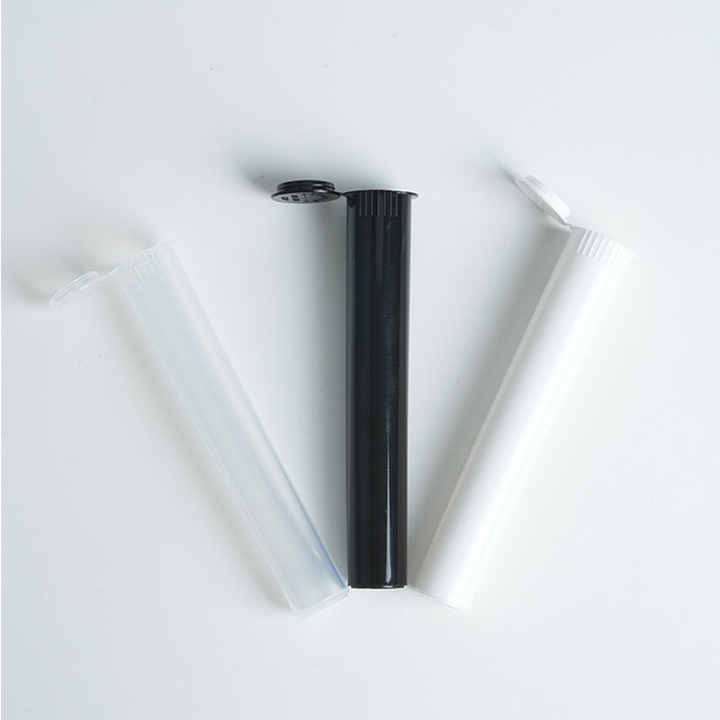 หลอดพลาสติกแบบเปิดฝาได้หลากสีสำหรับบรรจุสมุนไพร หลอดใส่ดอกไม้แห้งพร้อมฝาปิดป้องกันเด็ก บรรจุภัณฑ์สำหรับยาสูบ