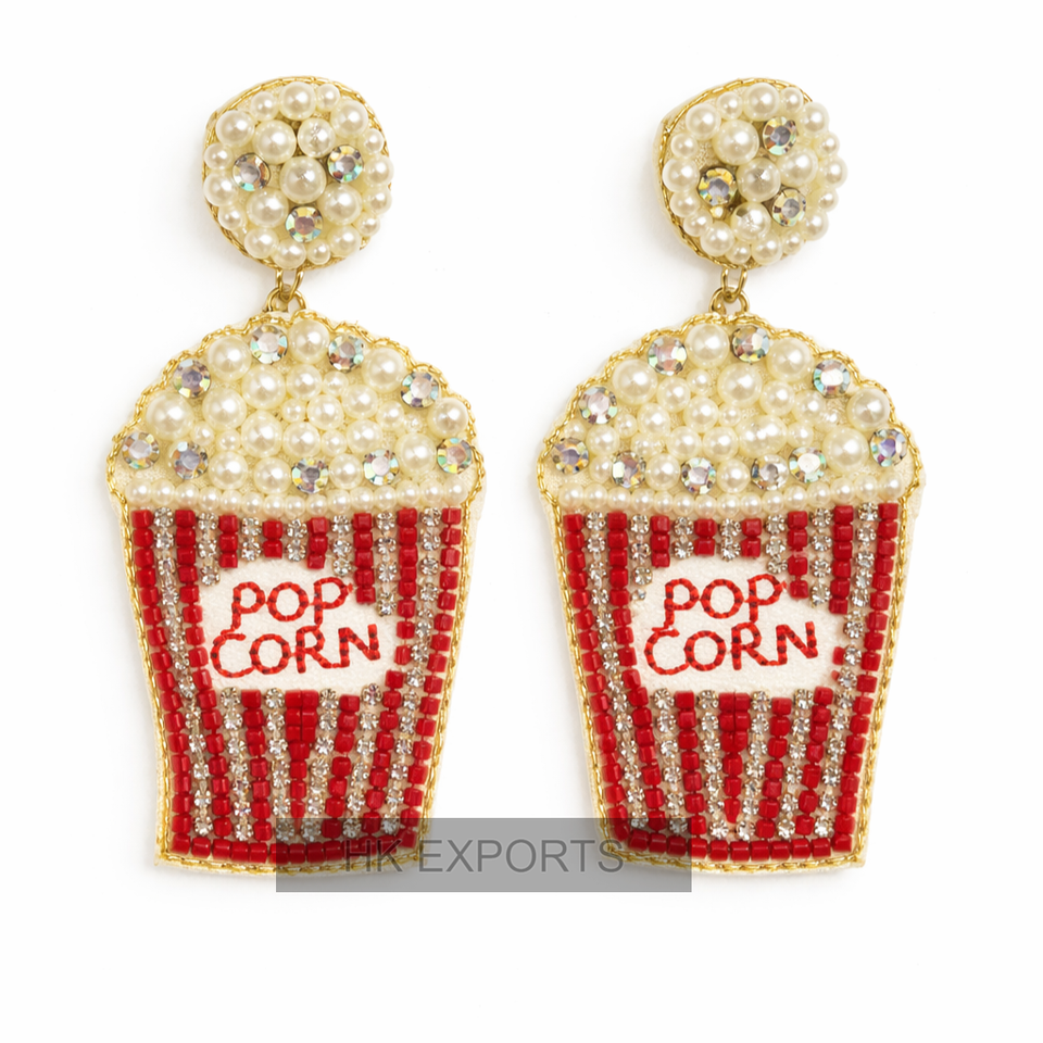 Wholesale Gold Plated Popcorn Beaded Earrings Fun Food Theme Fashion Jewelry for Women's Anniversary