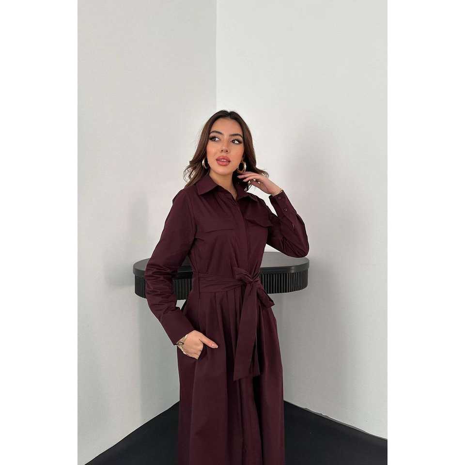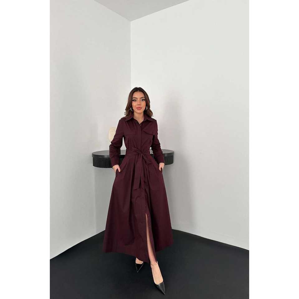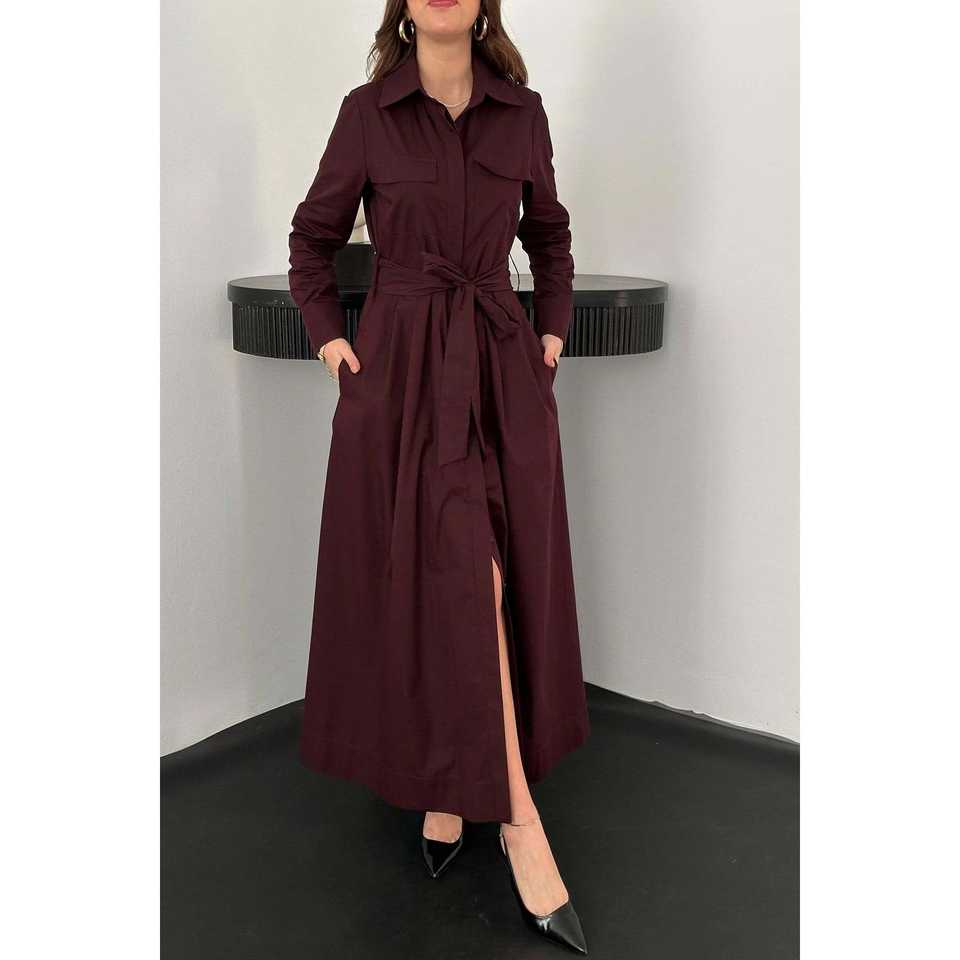 ชุดเดรสทำงานผ้าป๊อปลินขายส่ง พร้อมดีเทลกระดุมสีพลัม