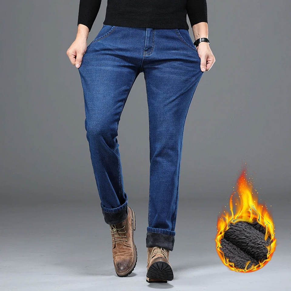 กางเกงยีนส์ทรงตรงสีน้ำเงินสำหรับผู้ชายและผู้ชายแฟชั่นฤดูใบไม้ผลิ
