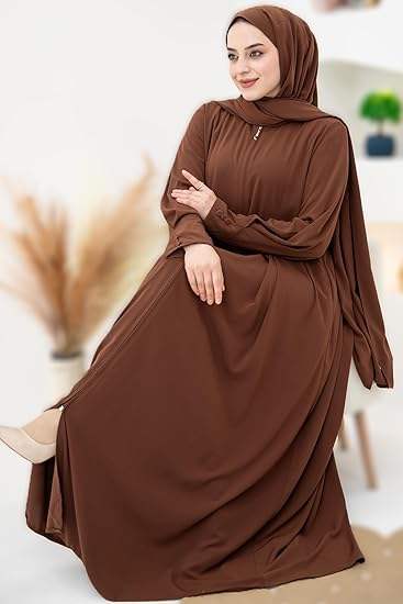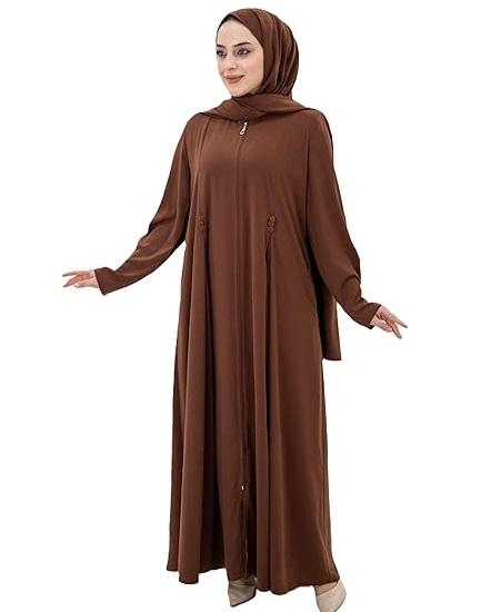 ชุดอาบายะห์สีน้ำตาลแบบขายส่ง ยอดนิยม ทันสมัย สำหรับผู้หญิง ระบายอากาศได้ดี ชุดเดรสยาว คิมา ชุดอิสลาม จิลบาบ ฮิญาบแบบมีซิป