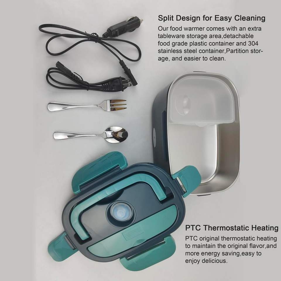 กล่องข้าวพกพาขนาด 1.5 ลิตร สำหรับรถยนต์/รถบรรทุก/บ้าน ใช้ไฟ 12V/24V/110V/220V สำหรับอุ่นอาหาร ใช้ในออฟฟิศ/ครัว