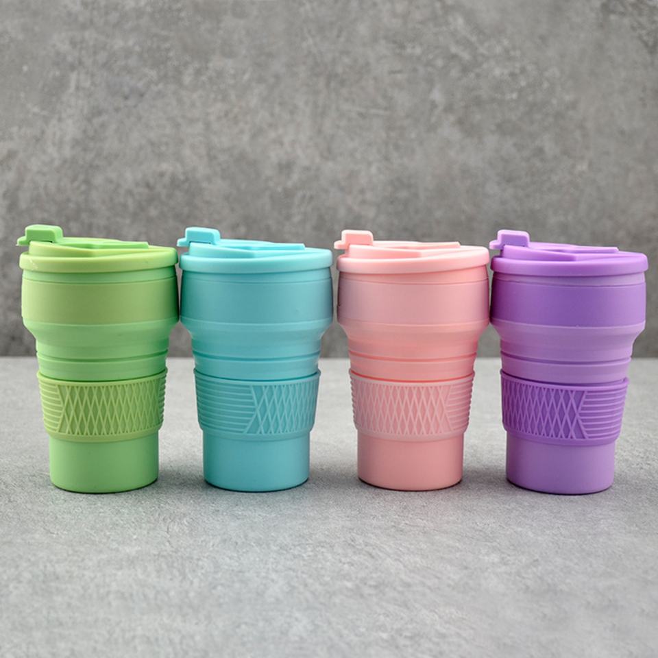 แก้วน้ำพับได้พกพาขนาด 350 มล. ทำจากซิลิโคน สำหรับกิจกรรมกลางแจ้ง สะดวกสบาย