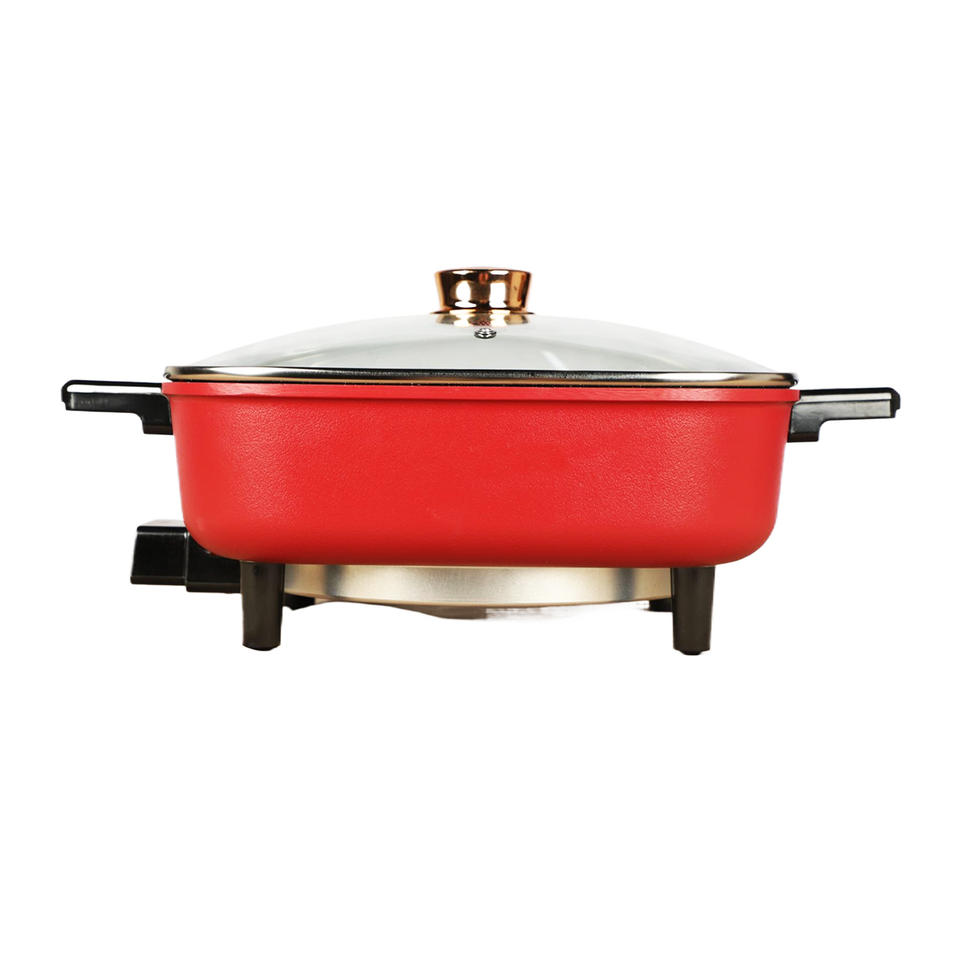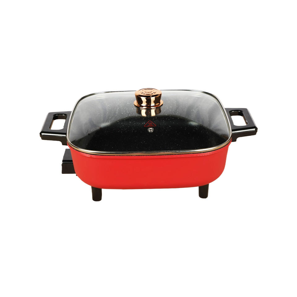 หม้อไฟฟ้า5L แบบพกพาหม้อไฟสไตล์เกาหลีแบบไม่ติดในครัวแบบสี่เหลี่ยม4L เพื่อสุขภาพในครัวเรือนโรงแรม