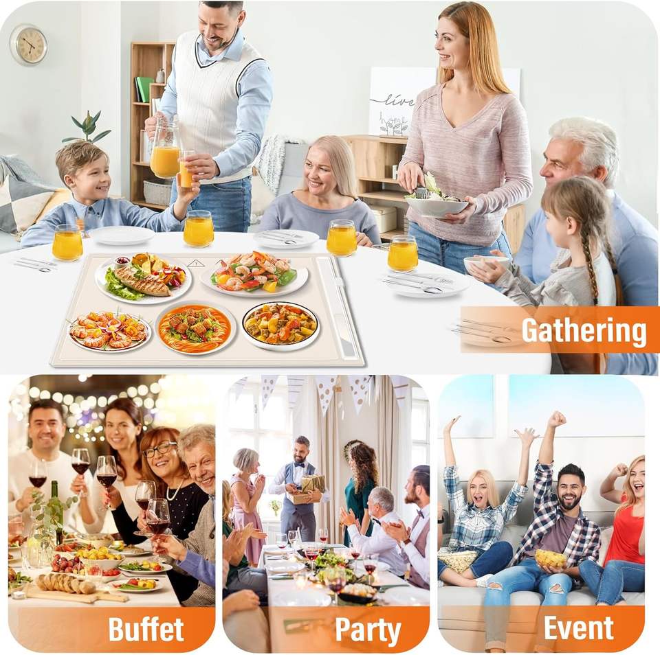 แผ่นทำความร้อนซิลิโคนแบบพกพาสำหรับอุ่นอาหารในครัว ขายส่ง ถาดพับได้ แพ็คเกจแบบกำหนดเองสำหรับงานปาร์ตี้ รูปทรงสี่เหลี่ยม