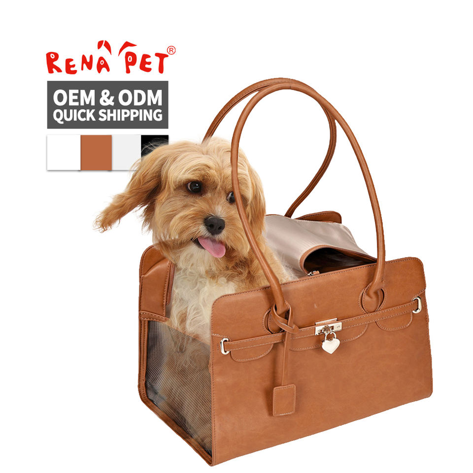กระเป๋าหิ้วสำหรับสุนัขแมวระบายอากาศหนังแบบพกพา