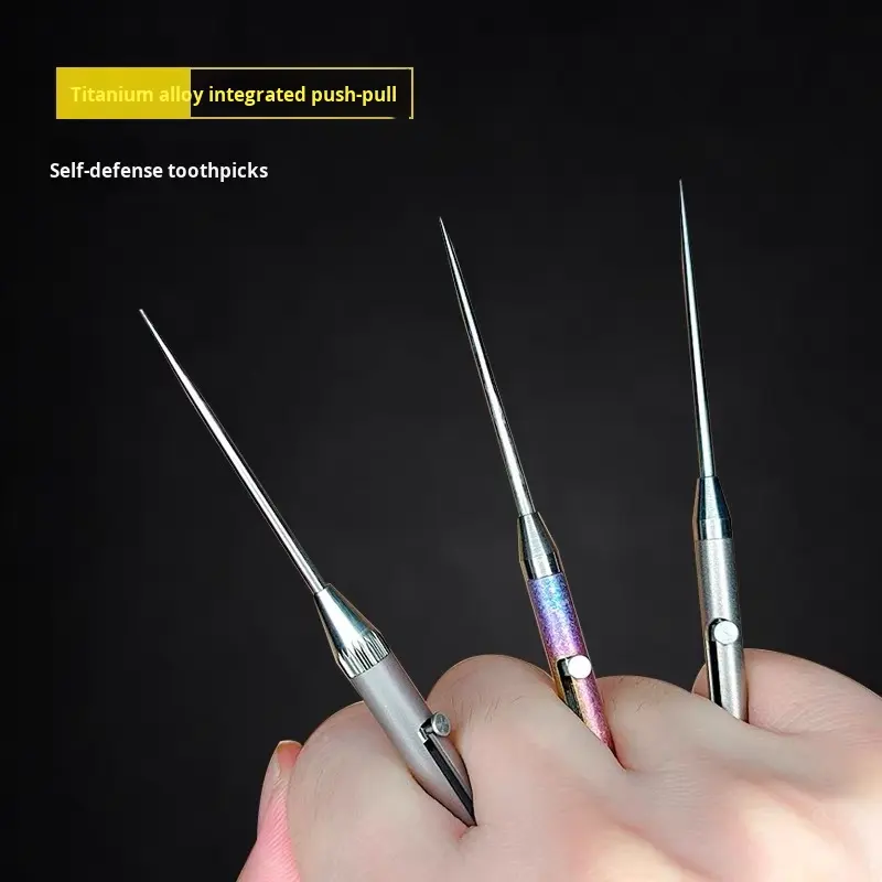 ไม้จิ้มฟันพกพาแบบยืดหดได้ ขายส่ง ผลิตจากไทเทเนียมสปริงแข็งแรง ใช้จิ้มผลไม้ ของขวัญ พวงกุญแจ จี้รูปฟัน