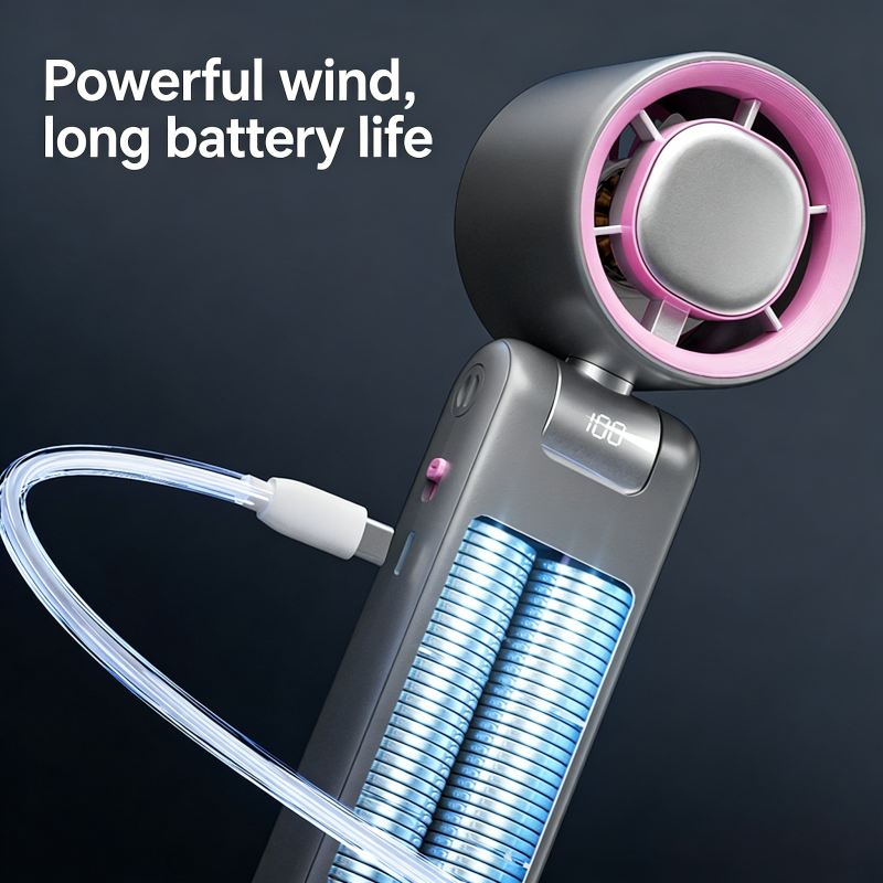 พัดลมมือถือพลาสติกแบบพกพา ชาร์จไฟผ่าน USB พร้อมหน้าจอดิจิตอล ความเร็วลมสูง 199 ระดับ พัดลมมินิ ขายส่ง