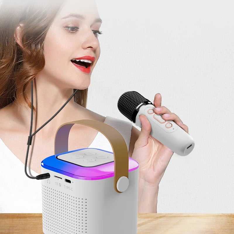 เครื่องไมโครโฟนไร้สายแบบพกพาขายส่ง ระบบลำโพง PA สำหรับคาราโอเกะ เสียงสเตอริโอ ไฟ LED สีสันสดใส RGB