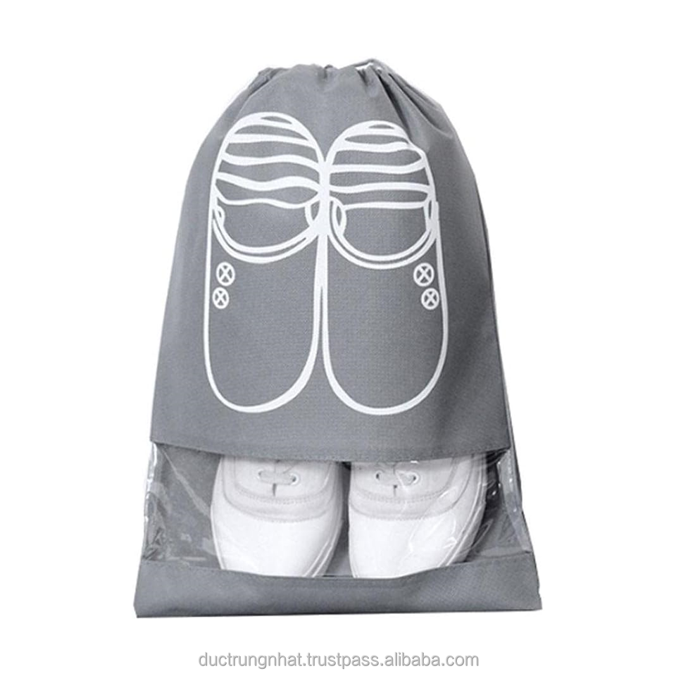 ถุงผ้าฝ้ายแบบมีเชือกผูกสำหรับบรรจุภัณฑ์ขายส่ง ถุงเก็บรองเท้าฟุตบอลพร้อมซิป ถุงกันฝุ่นระบายอากาศสำหรับเดินทาง