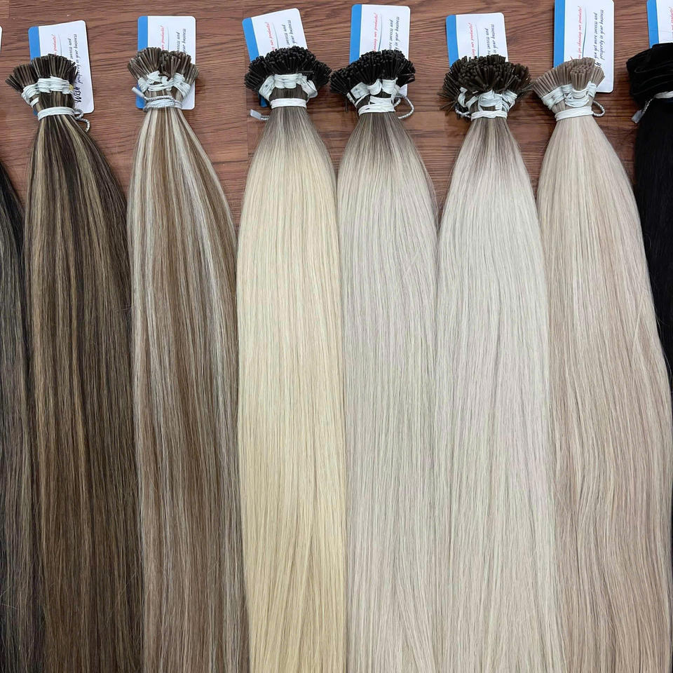 ผมต่อเคราตินทรงตรงปลายรัดแน่นแบบคู่สำหรับต่อผมมนุษย์บริสุทธิ์เกรดเรมี่