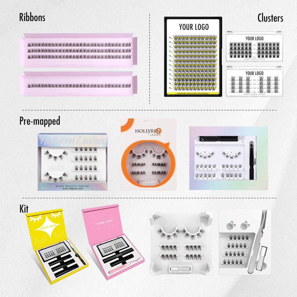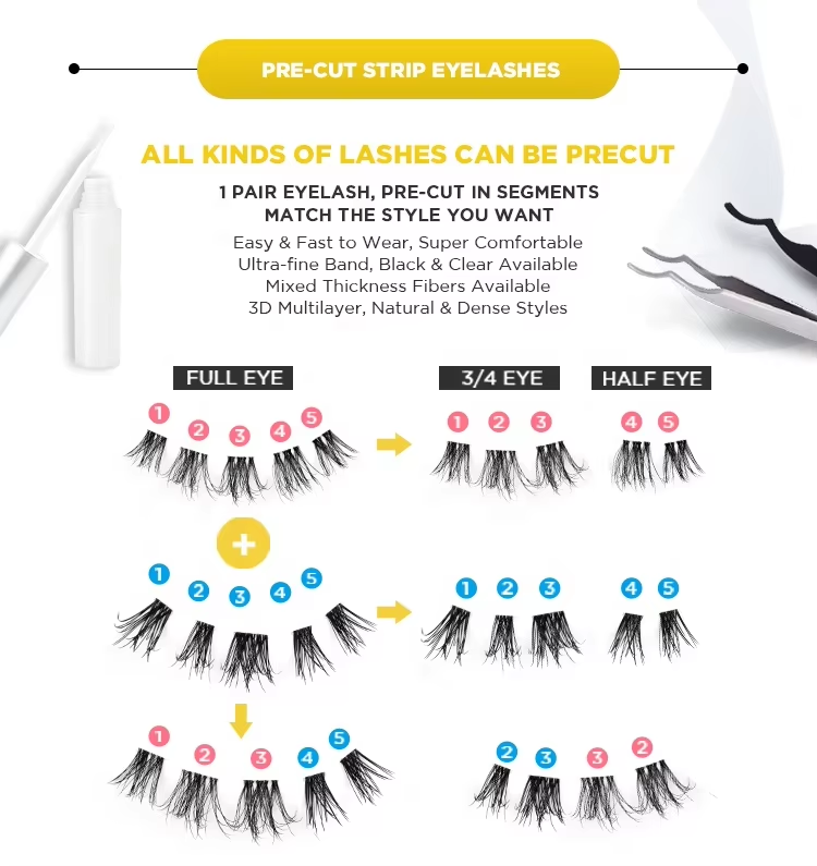 Wholesale Pre Cut Lash Segments Korean Pbt Fiber Natural Fluffy Style Black Clear Band Mink Cluster Lashes With Custom Package