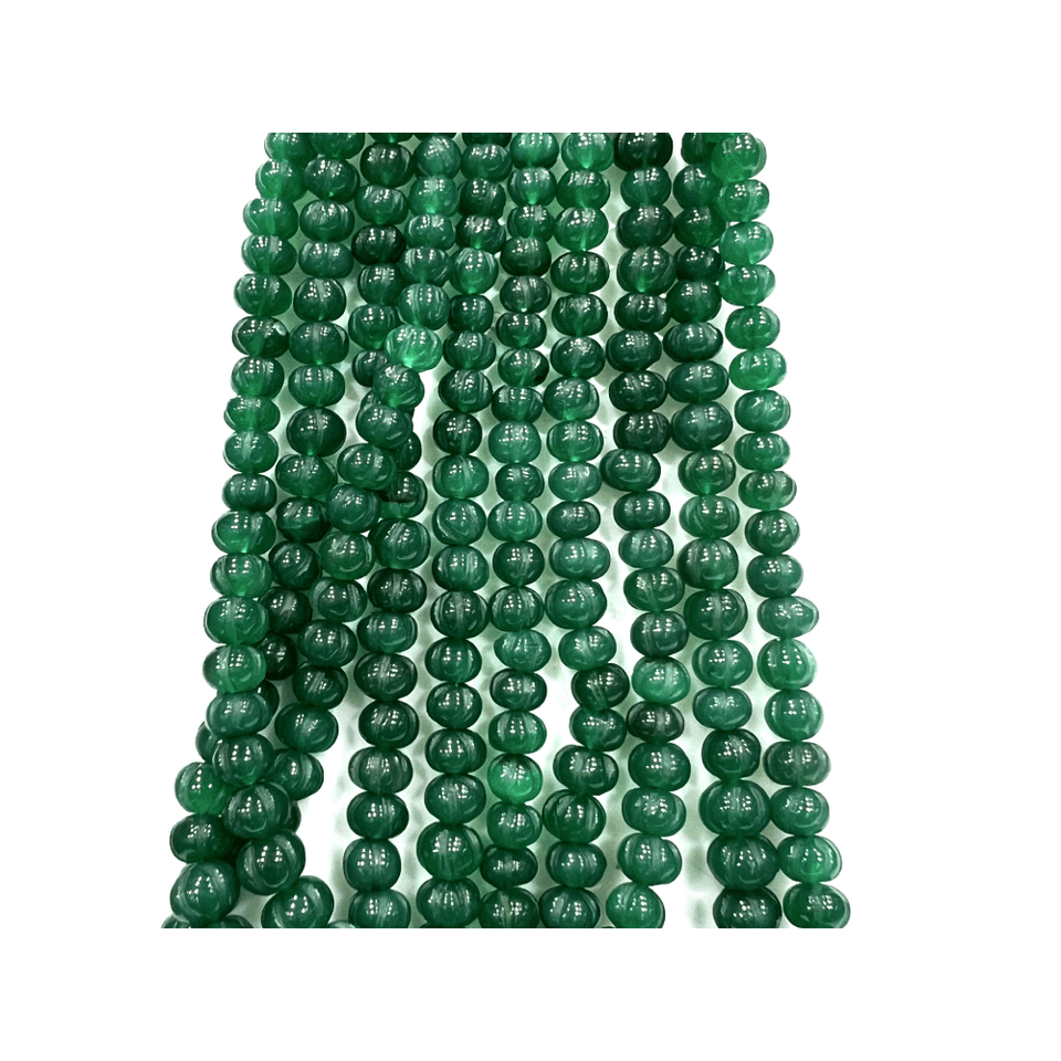 หินธรรมชาติพลอยนิลสีเขียวขนาด14นิ้วรูปทรงฟักทองขนาด7-10มม.