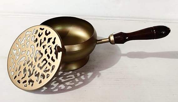 กระถางธูปทองเหลืองพรีเมี่ยมพร้อมรายละเอียดที่ได้แรงบันดาลใจจากสมัยโบราณสำหรับแท่นบูชาและพิธีกรรม