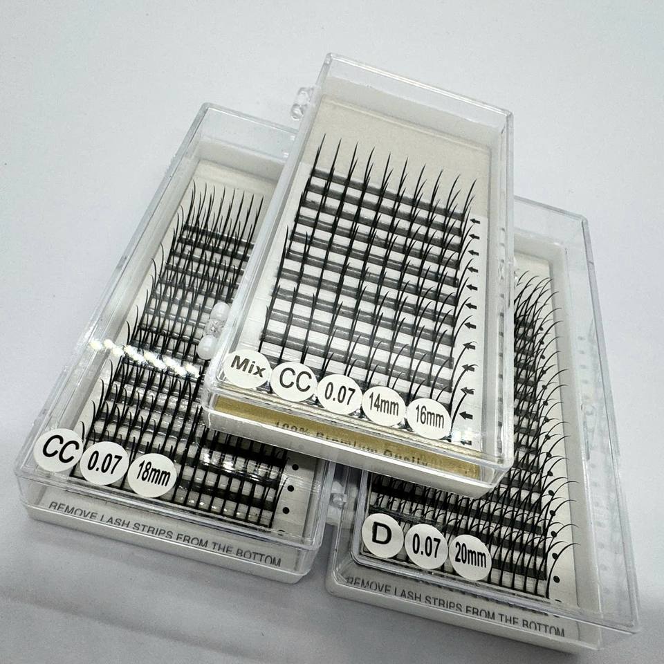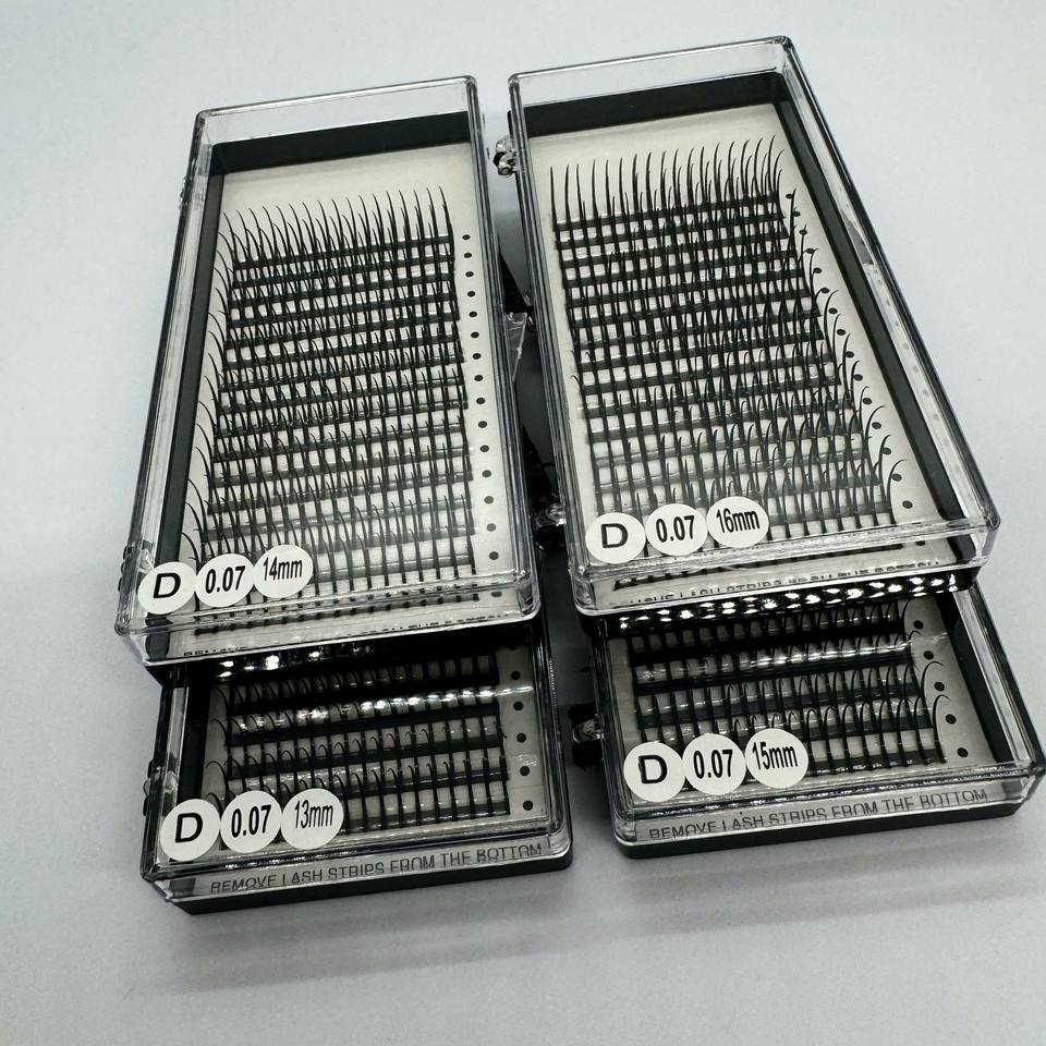 ขนตาปลอมเกาหลี PBT คุณภาพพรีเมียมแบบขายส่ง ขนตาแบบ Spike Lash 12/16 เส้น สีดำด้าน เส้นใยสังเคราะห์ C/CC/D/DD/M/L