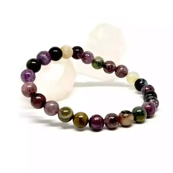 สร้อยข้อมือพลอยทัวร์มาลีนหลากสีคุณภาพระดับพรีเมี่ยมงานหัตถกรรมหินกึ่งมีค่าคริสตัลขัดเงาคุณภาพสูง