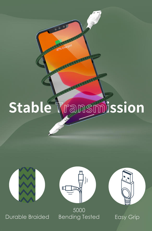 สายชาร์จและซิงค์ USB-A to C แบบถักไนลอน/พีวีซี คุณภาพพรีเมียม สำหรับอุปกรณ์แอนดรอยด์ ได้รับการรับรองมาตรฐาน RoHS/REACH รุ่น MH888 ขายส่ง