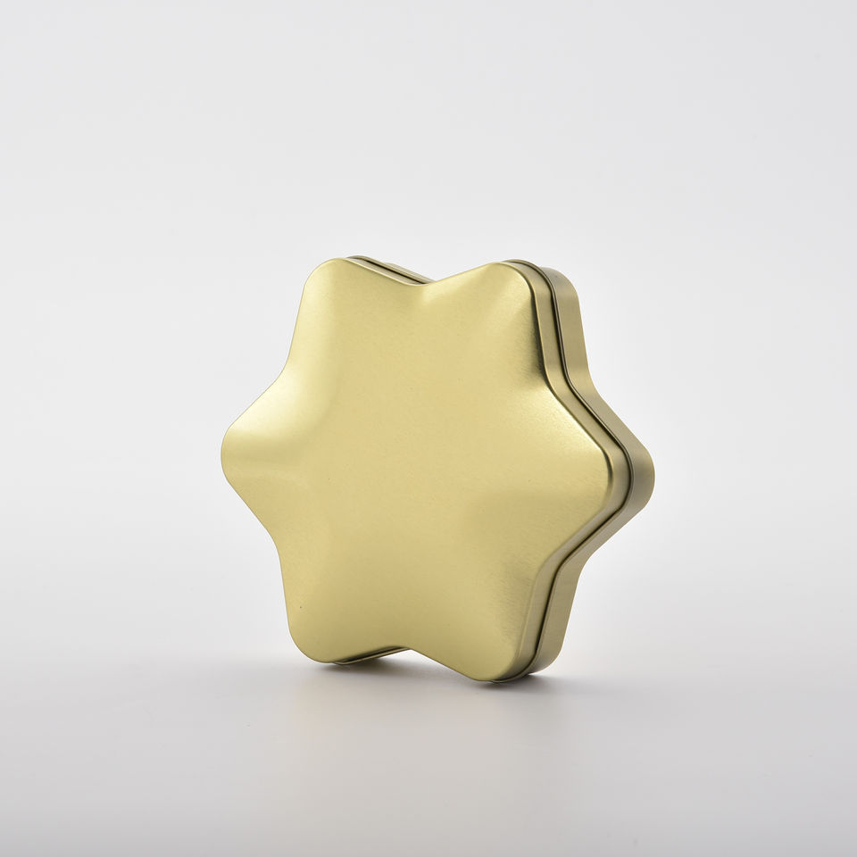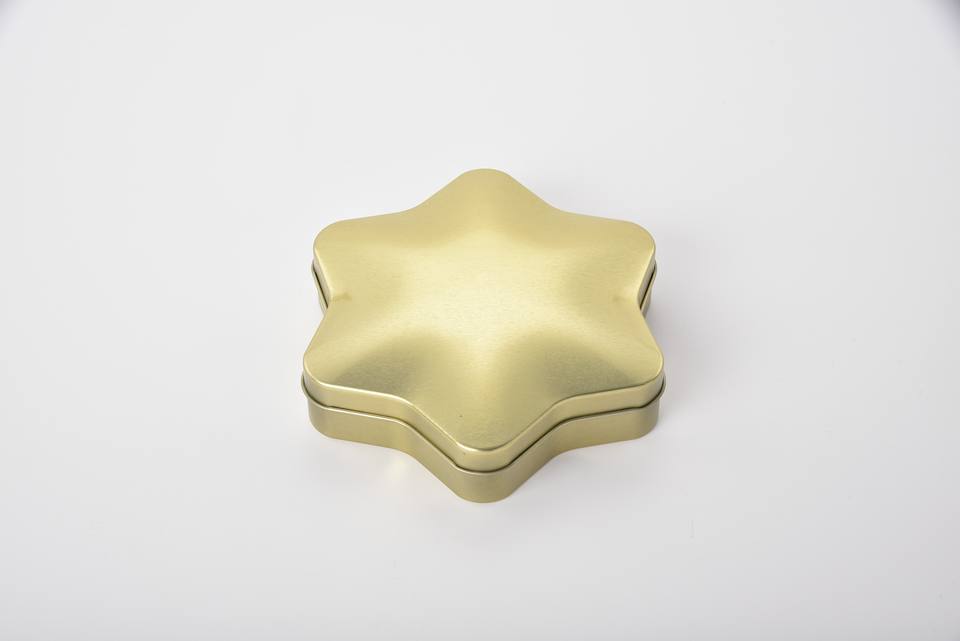 ภาชนะดีบุกโลหะพิมพ์ลายออฟเซตกล่องของที่ระลึกวันหยุดของขวัญรูปทรงดาว