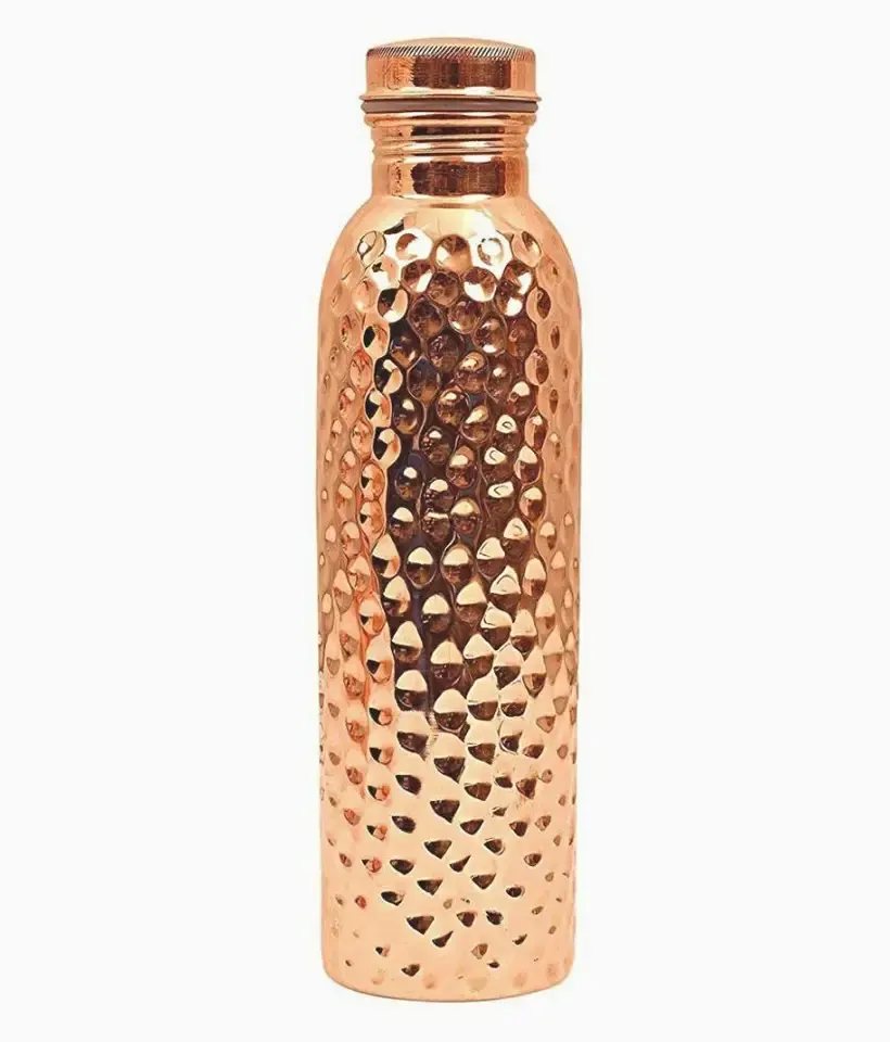 ขวดน้ำทำจากทองแดงบริสุทธิ์อุปกรณ์เสริมเพื่อสุขภาพและให้ความชุ่มชื้นจากอินเดียพร้อมวิธีการดื่มโดยตรง