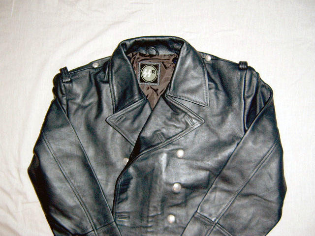 great coat:leather/ wool great coat