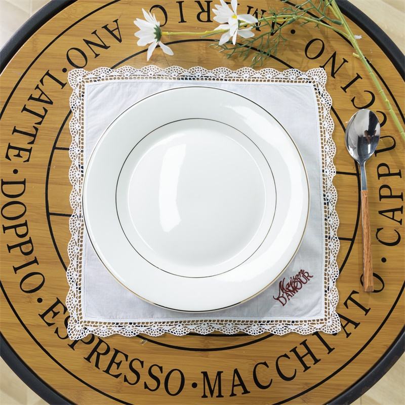 Elegant Lace Edge Embroidered Logo Cotton Napkin Place Mat