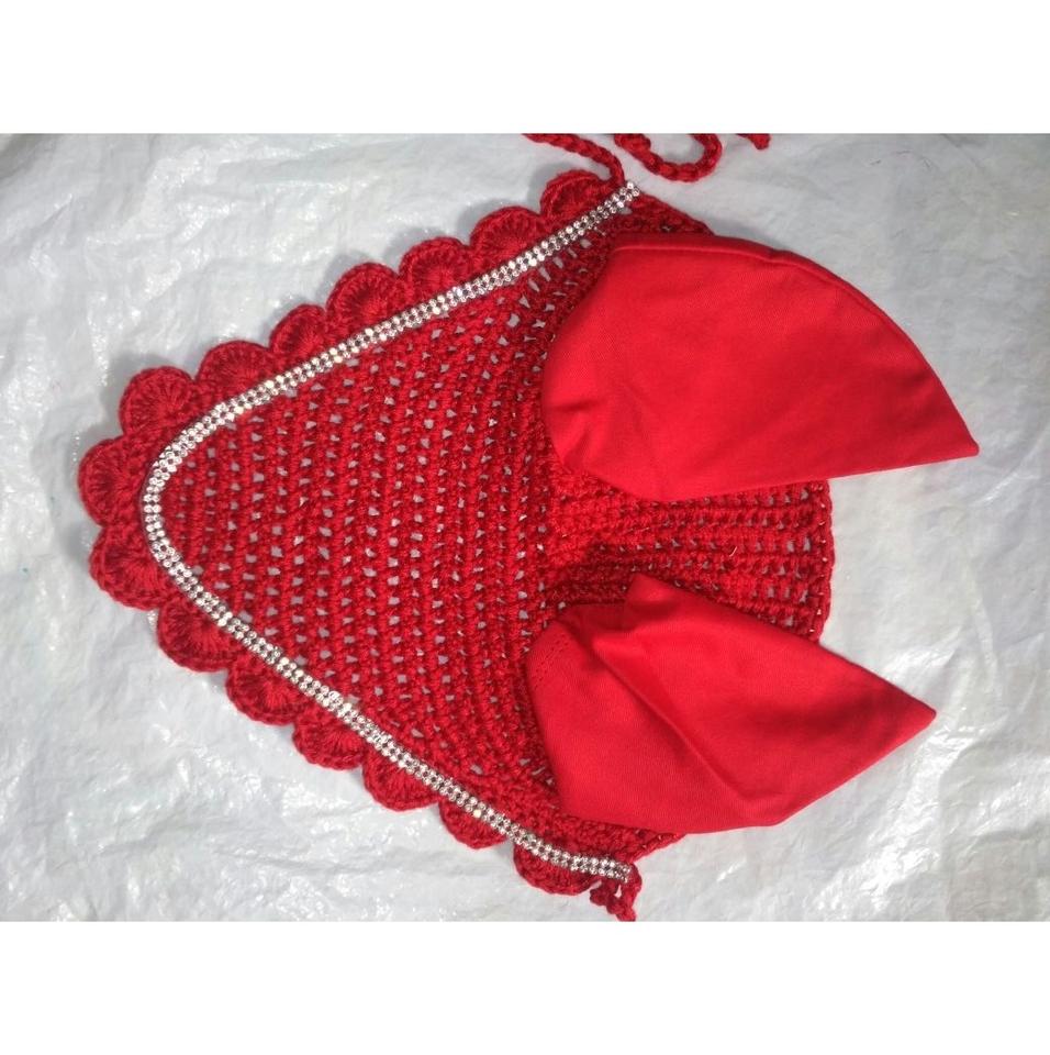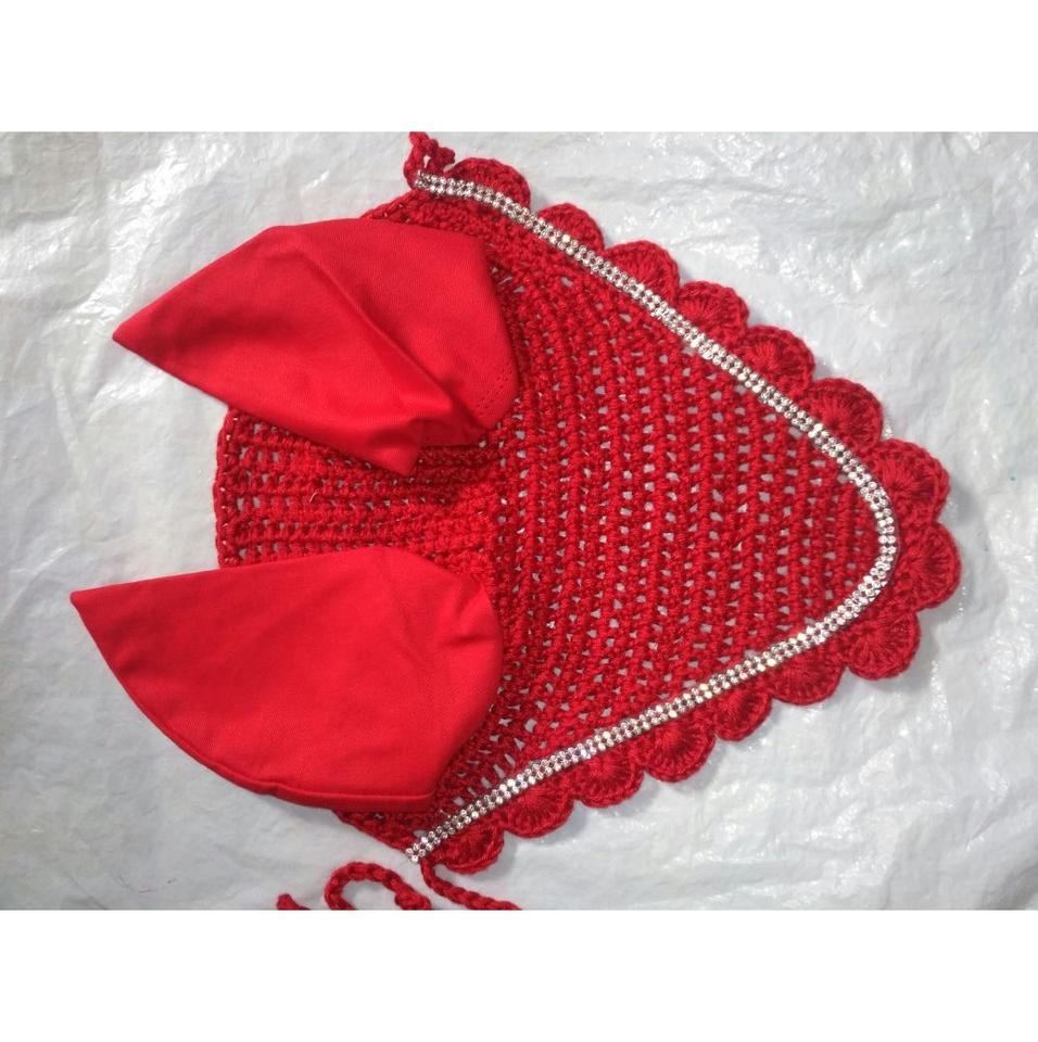 ผ้าคลุมหน้าสำหรับขี่ม้าสีแดงทำจากวัสดุตาข่ายใช้สำหรับม้าทุกขนาด