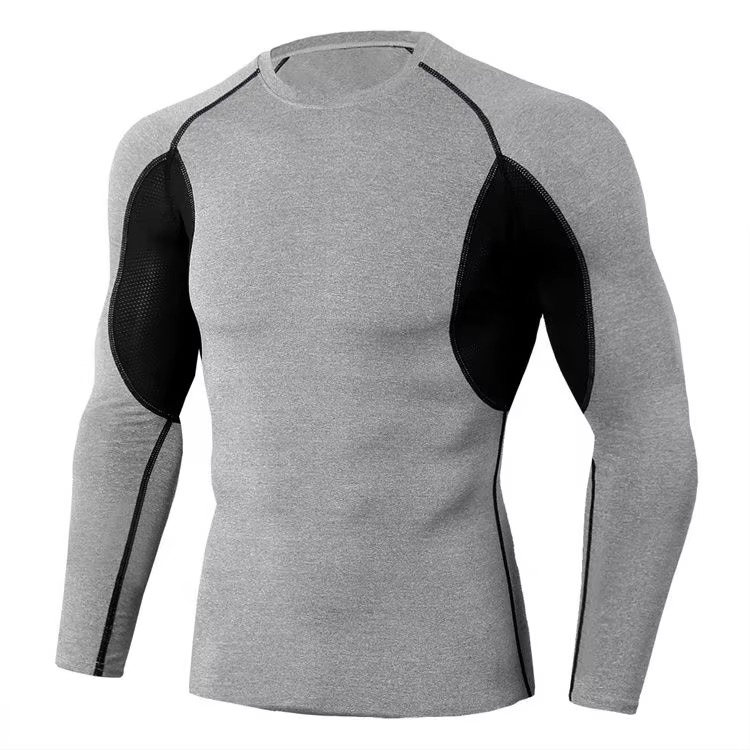 เสื้อรัดกล้ามเนื้อผู้ชายคุณภาพพรีเมียมแบบขายส่ง แขนยาว ป้องกันรังสียูวี ระบายอากาศได้ดี เป็นมิตรกับสิ่งแวดล้อม แห้งเร็ว