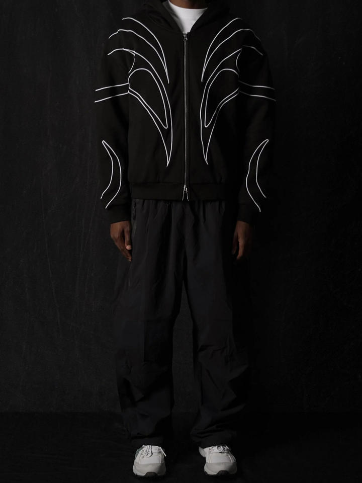 ด้านหน้า, แขนเสื้อด้านซ้าย, ด้านหลัง, แขนเสื้อด้านขวา, ขอบล่าง, หลังคอ